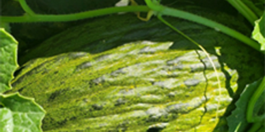 This "Toad Skin" melon is harvested in late fall. It is definitely worth the wait for the delicious white flesh inside this beautiful melon.